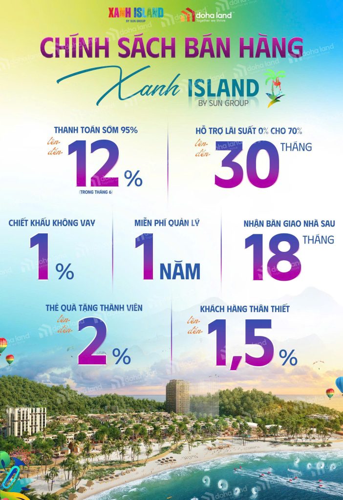 Dự án Xanh Island Cát Bà Hải Phòng dự kiến sẽ ra mắt trong thời gian sắp tới, với chính sách bán hàng dự kiến: